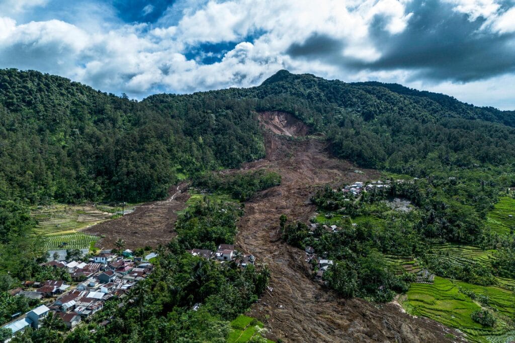 Pada foto, Foto udara tanah longsor sepanjang 800 meter yang menimbun rumah warga di Dusun Situkung, Desa Pandanarum, Kecamatan Pandanarum, Kabupaten Banjarnegara, Jawa Tengah, Selasa (18/11/2025). ANTARA FOTO/ Aprilio Akbar.