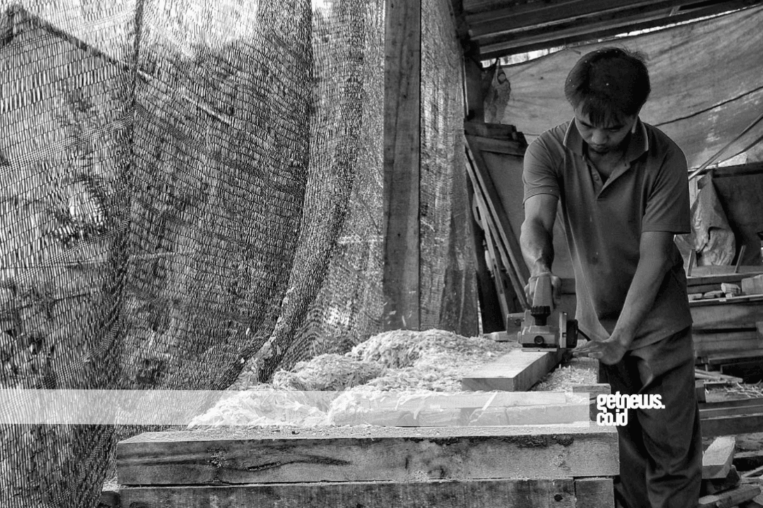 Foto cover: ilustrasi, seorang pengrajin mebeul sedang menyerut kayu (Foto getnews)