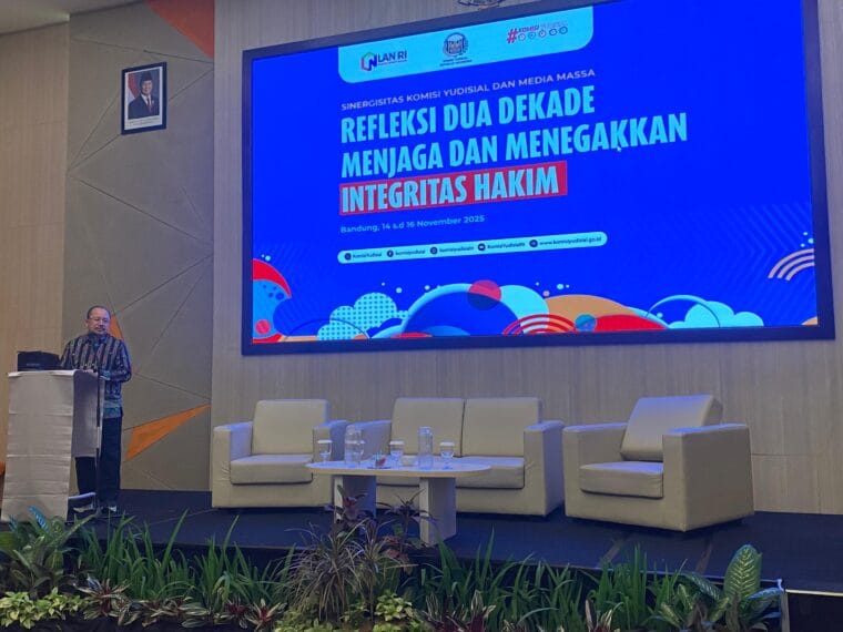 Foto cover: Ketua Komisi Yudisial (KY) Amzulian RifaiMedia Gathering KY, yang mengangkat tema “Refleksi Dua Dekade Menjaga dan Menegakkan Integritas Hakim”, di HARRIS Hotel & Conventions Ciumbuleuit Bandung, Jumat (14/11/2025). (Foto: Pasha Yudha Ernowo/Infopublik.id)