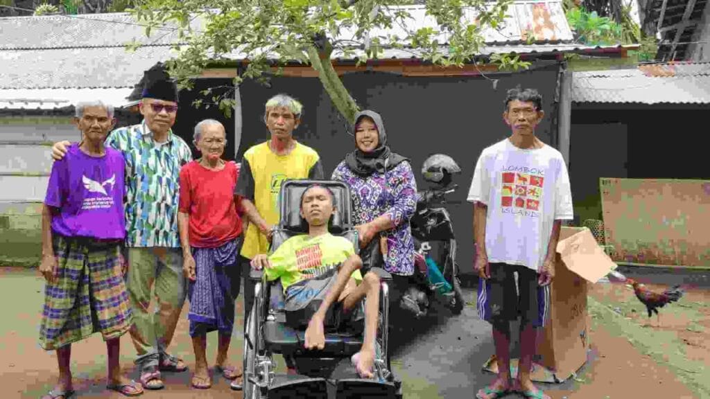 Kepala Dinas (Kadis) Sosial Lobar, H. K. Winengan, turun langsung menelusuri jalan yang lumayan jauh dan berliku di Dusun Tambang Eleh Desa Jagaraga, Kecamatan Kuripan untuk menyerahkan bantuan kursi roda kepada seorang pemuda yang sangat membutuhkan, Kamis (20/11/2025).