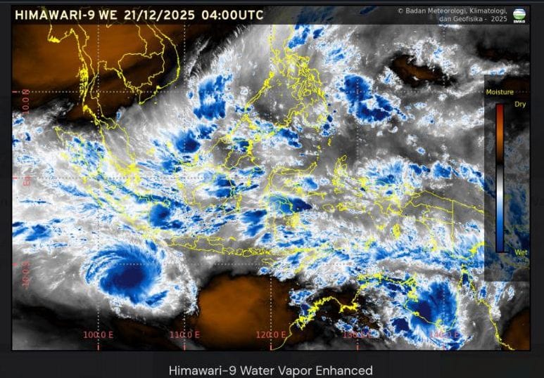 Berdasarkan analisis citra satelit terkini, pergerakan massa udara basah terpantau sangat aktif di wilayah selatan ekuator. Hal ini memicu potensi: